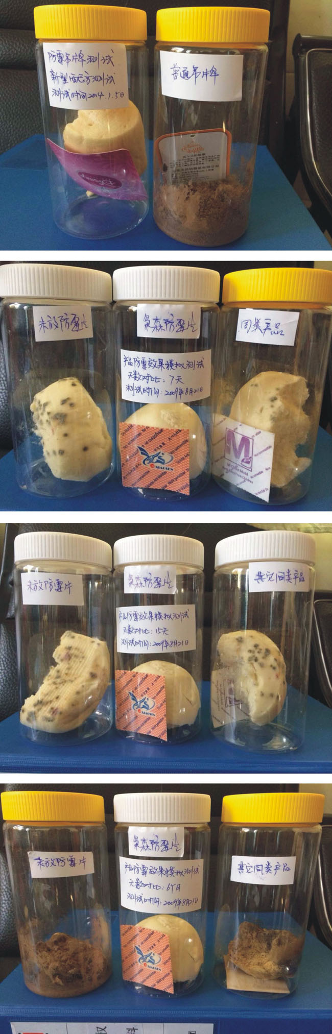 防霉模擬測式法。在隨大貨抽檢撕下一片防霉片放入透明的玻璃杯中,再在杯中放入半個(gè)饅頭,同時(shí)準(zhǔn)備兩個(gè)杯,一個(gè)放防霉片,一個(gè)不放防霉片,同時(shí)蓋好兩個(gè)杯子的杯蓋。在把杯蓋上寫好作實(shí)驗(yàn)的時(shí)間,這樣兩個(gè)杯子的模擬測試就作成了。28天內(nèi)你可以隨時(shí)觀察兩個(gè)杯子的發(fā)霉情況,如果放防霉片的杯子在3到6個(gè)月沒啥變化,那么這個(gè)品牌的防霉片就絕對沒有問題了!